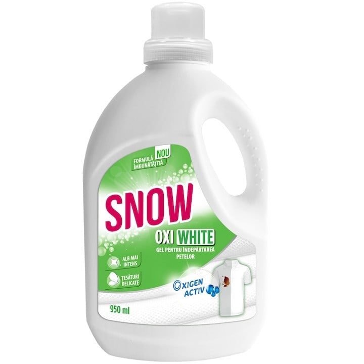 Snow Oxi White Gel: Îndepărtează petele, redă albul impecabil hainelor.