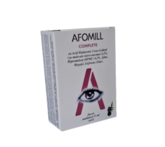 AFOMILL Afine ajuta contra inrosirii restabilind limpezimea, are pH, izotonicitate si osmolaritate perfect compatibile cu tesutul ocular si cu lichidul lacrimal.