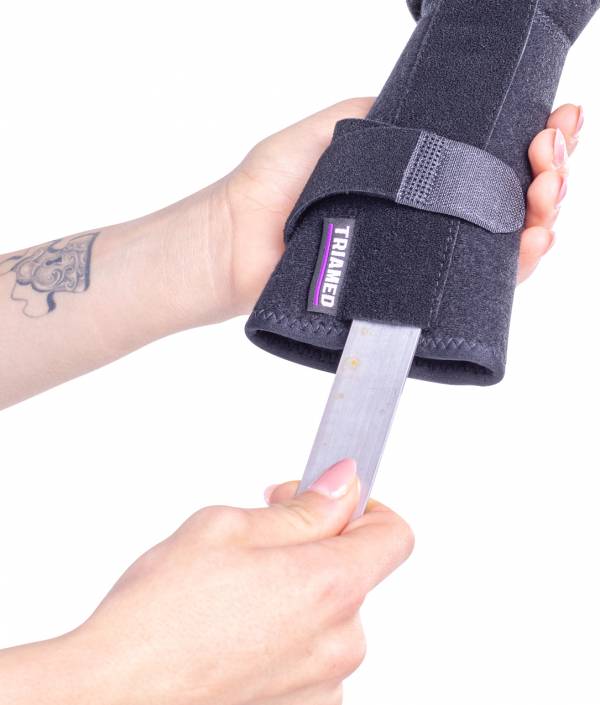 Conceputa dintr-un material textil rigid care permite circulatia aerului, orteza ofera confort si stabilitate in timpul utilizarii. Este prevazuta cu o atela metalica palmara, modelabila, care ofera sustinere perfecta pentru incheietura. Pe partea dorsala a mainii, orteza include doua atele din material plastic, incorporate, pentru un suport suplimentar.