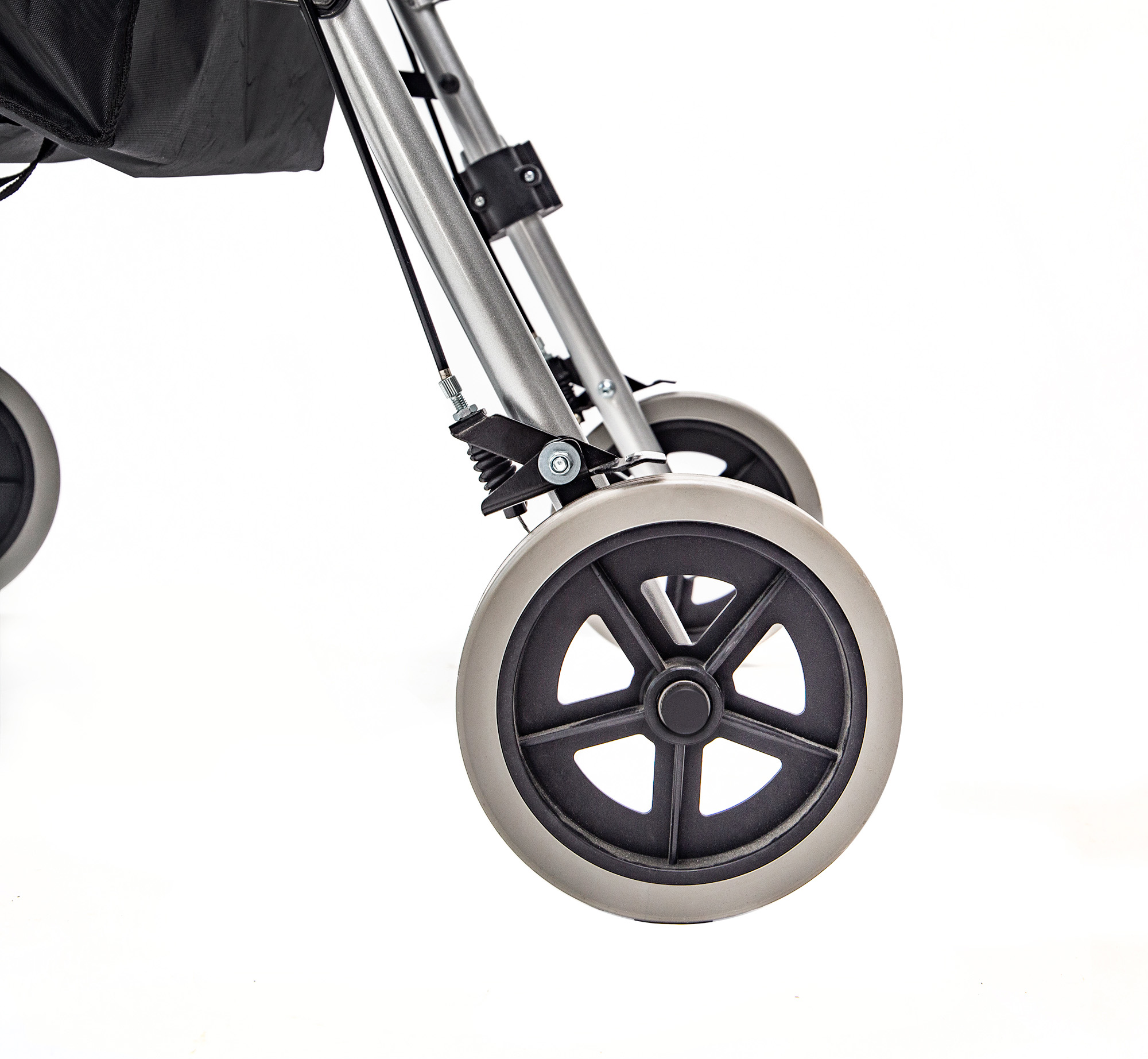 Pentru siguranța dumneavoastră, blocați întotdeauna ambele frâne (prin apăsarea manetelor în jos până se aud un clic) înainte de a vă așeza pe rollator. Plierea se realizează ușor prin tragerea mecanismului de sub șezut după îndepărtarea coșului metalic.