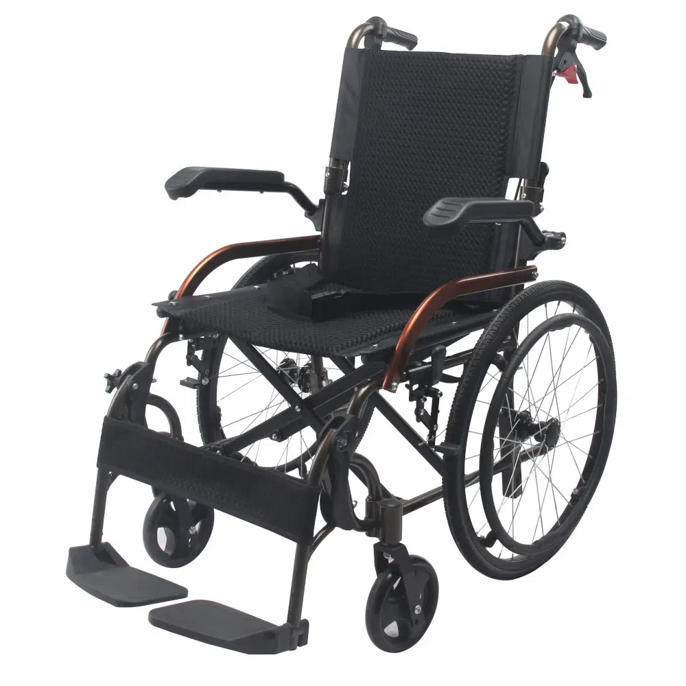 - Cotiere rabatabile: Designul inteligent permite rabatarea brațelor pe spate, facilitând transferul lateral al pacientului de pe scaun în pat sau pe scaunul auto.